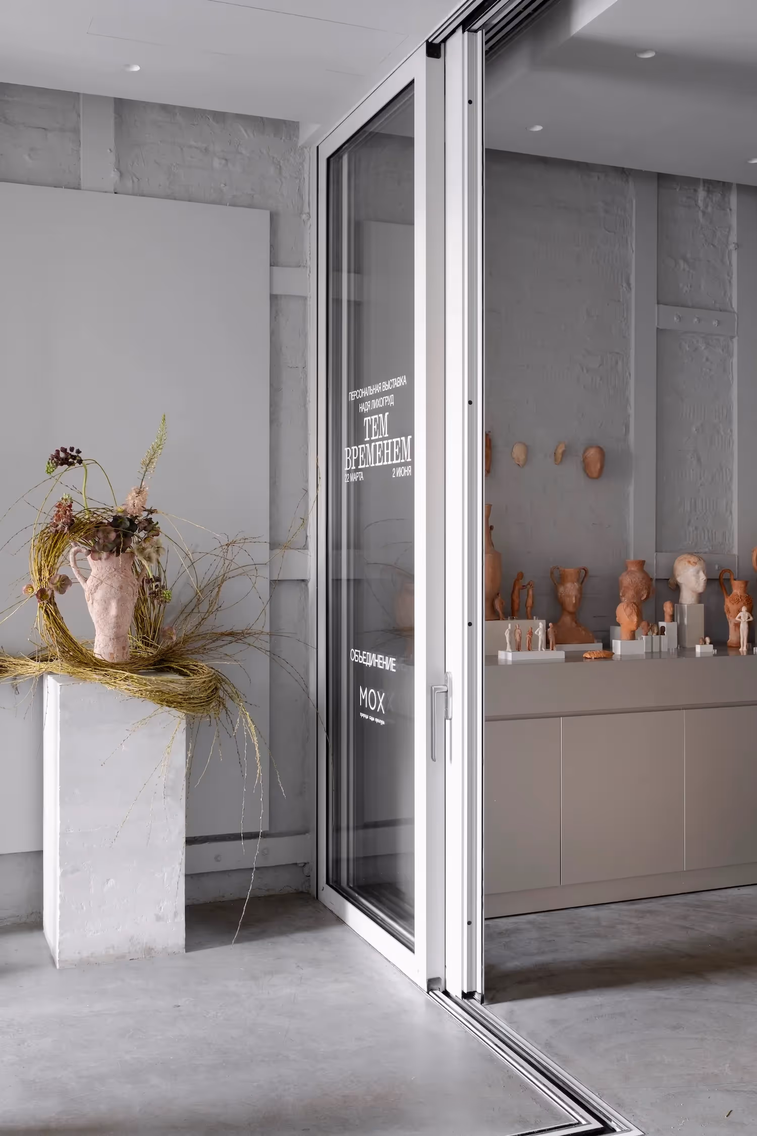Персональная выставка Нади Лихогруд «Тем временем» предлагает взглянуть на археологию как на образ будущего для актуального искусства — культурный слой, который будут расшифровывать следующие поколения, стремясь понять, какой была наша цивилизация. Прототипом проекта стали экспозиции археологических памятников, на которых причудливо соединяются утилитарные, сакральные и художественные предметы.