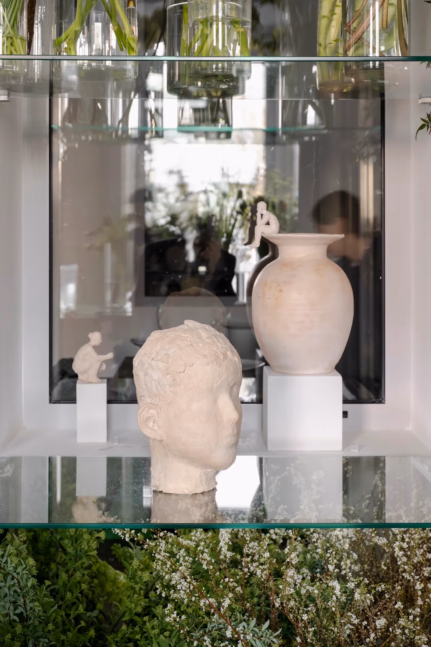 В работах Нади можно встретить отсылки к античным сосудам, выполненным в форме женских голов или украшенным объёмными фигурными композициями, а также к танагрским терракотовым статуэткам, запечатлевшим бытовые сценки и повседневные занятия эпохи Эллинизма. Античный арсенал используется в экспозиции «Тем временем» для осмысления современности и создания ощущения безвременья.